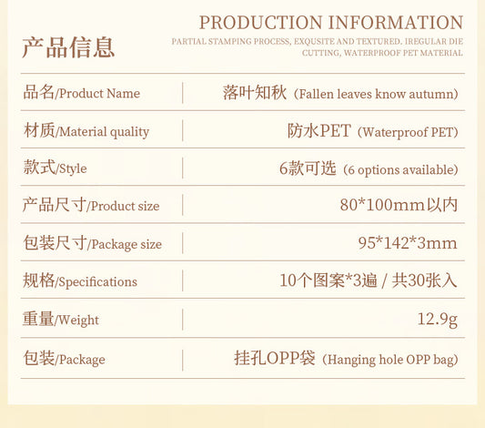 Autumn Signaled by Falling Leaves Waterproof PET Transparent Handmade Journal Sticker Pack. DIY Handmade Journal Plant Material, Children's Stickers, and Leaf Stickers