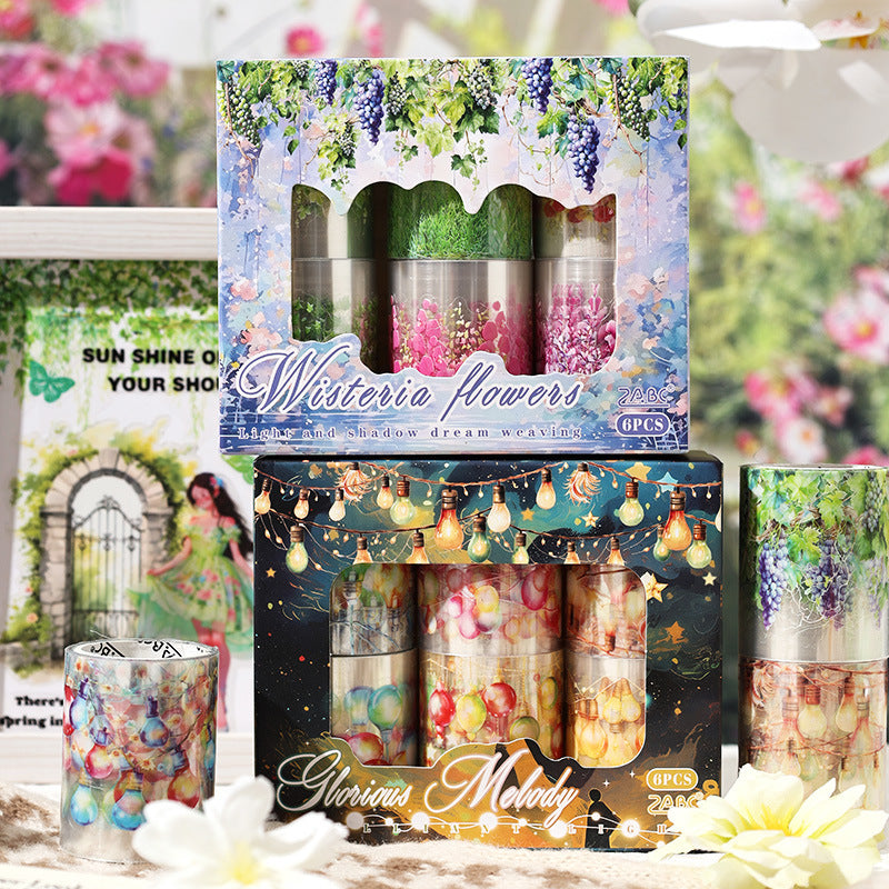 Dream of Light and Shadow Transparent Waterproof PET Tape Set, DIY Handmade Journal and Diary Stickers, Cross-border Handmade Journal Scenery Decoration Tape Stickers