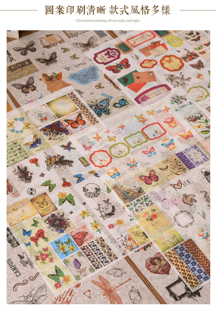 Fun Collection Washi Tape Sticker Book, DIY Handmade Journal, Diary Decoration Material, Sticker Art, Retro Stickers of Animals, Plants, Flowers and Herbs