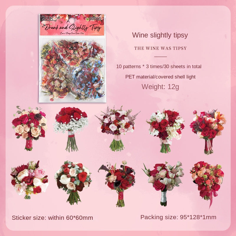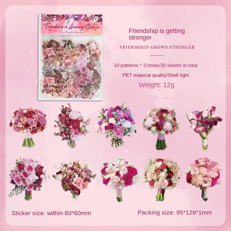 Transparent Waterproof PET Handmade Journal Sticker Pack with Overflowing Love, DIY Laser Shell Luster Handmade Journal and Diary Floral Stickers